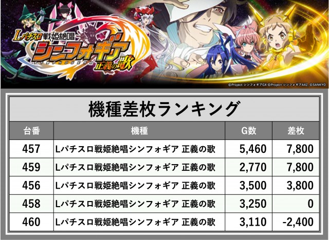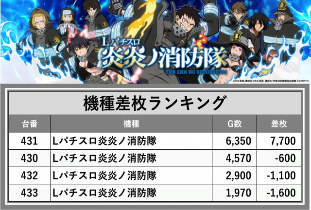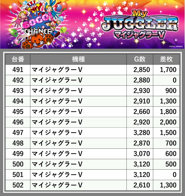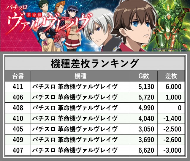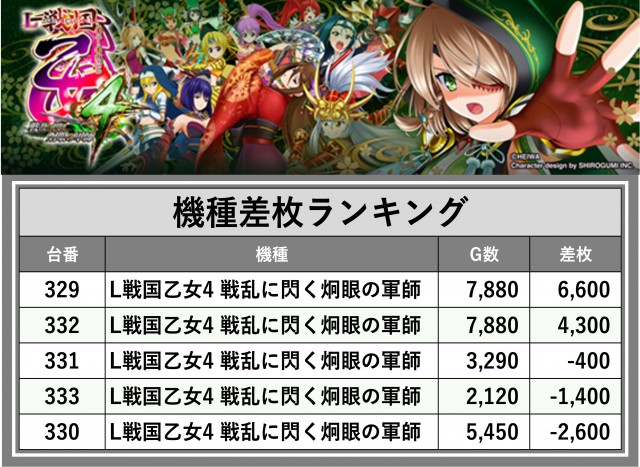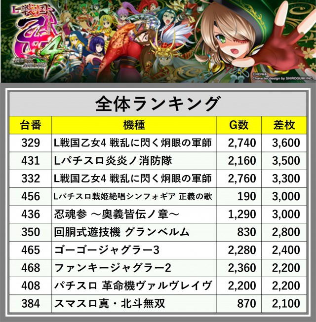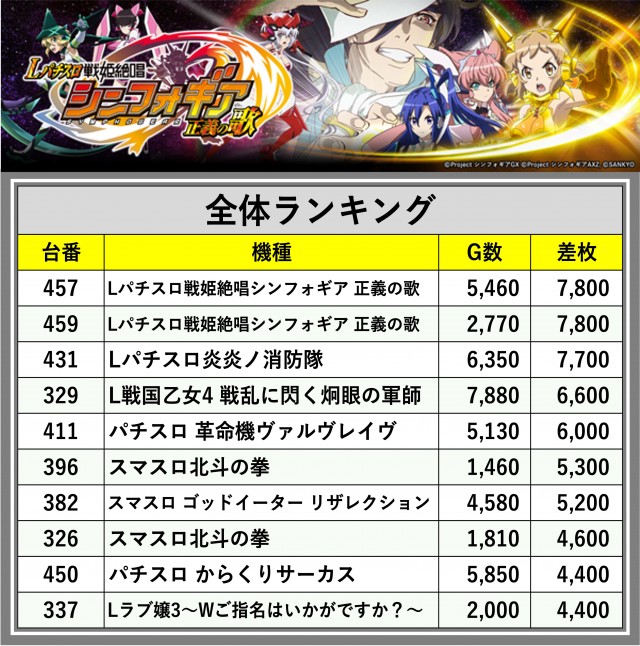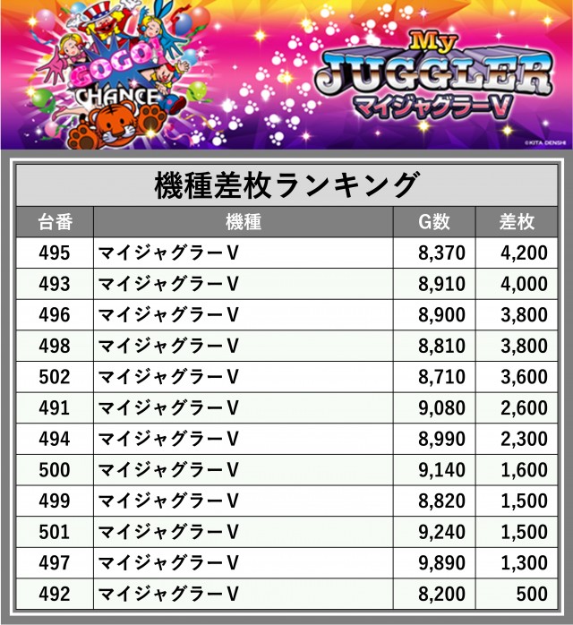 ※差枚数順に掲載しています