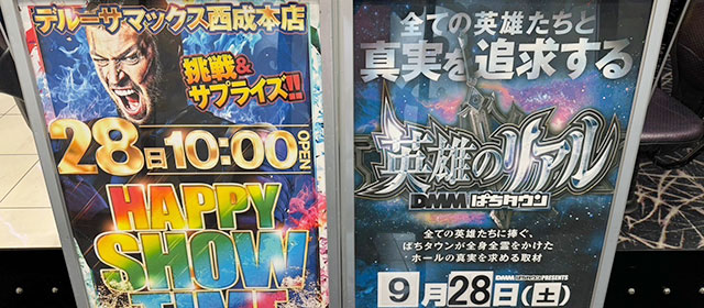 9月28日、「デルーサマックス西成本店」にて「英雄のリアル」が実施された。朝から93人のファンが集まり、彼らは開店となるその瞬間を待ちわびていたのが印象的だ。これまでコンスタントに本企画への参戦を表明、その度に盛り上がりを披露しているだけに、今回も期待がかかるところだったが果たして…さっそく詳細データとともに、店内の様子をお届けしていくぞ!