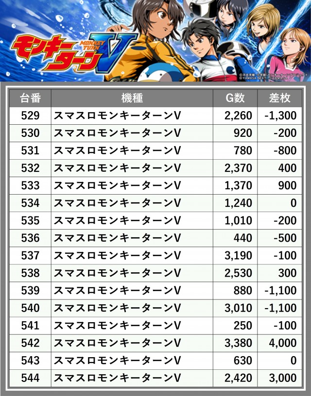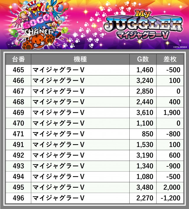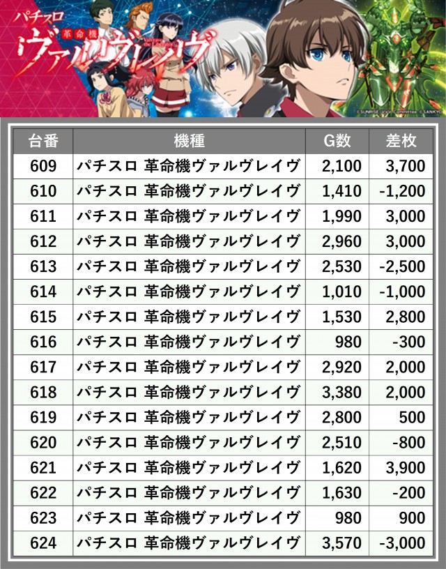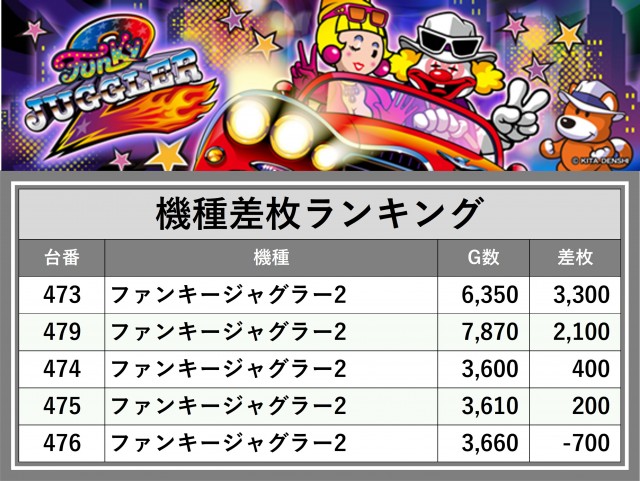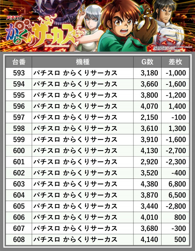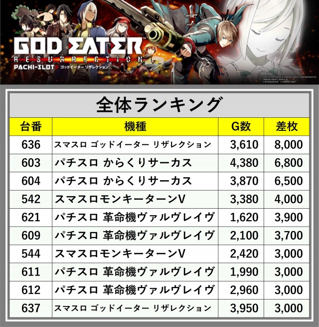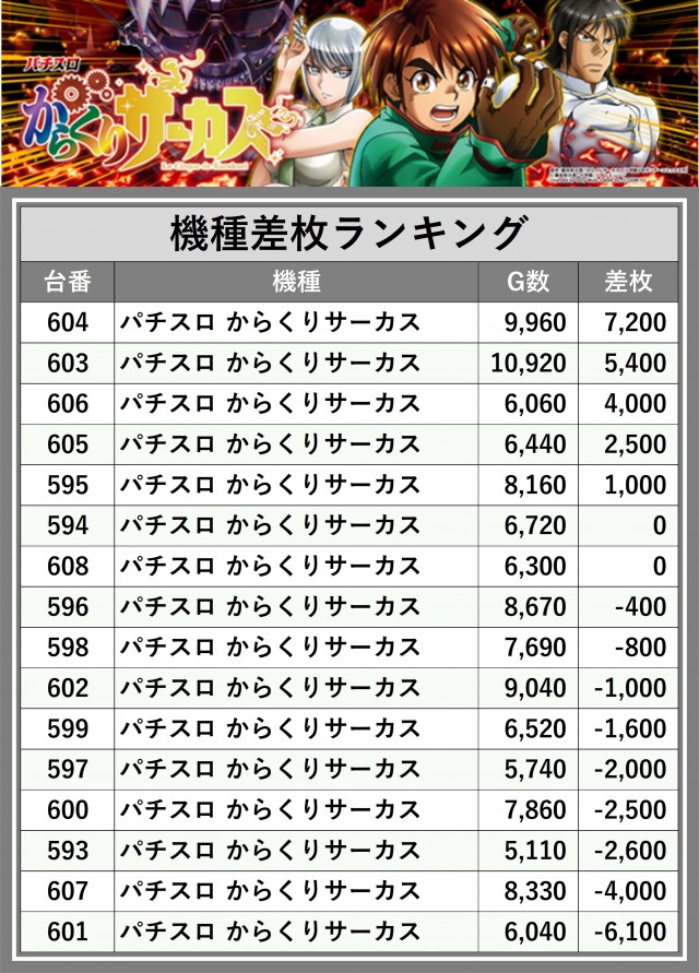 ※差枚数順に掲載しています