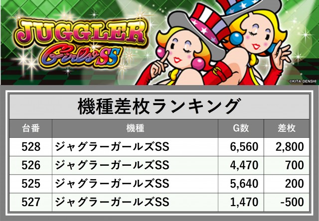 厳選された取材対象機種をはじめ、その他スロット全体から好記録が飛び出した!プレイヤーが楽しんだ1日を下記データにて振り返ってみて欲しい。