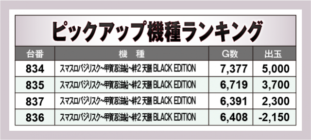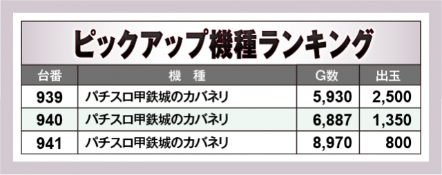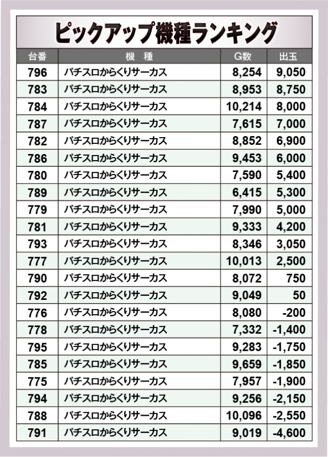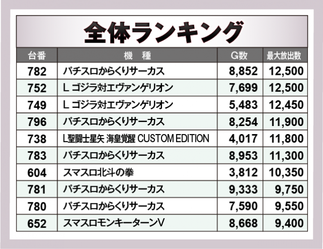 ※出玉数順に掲載しています