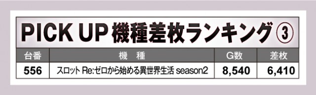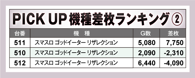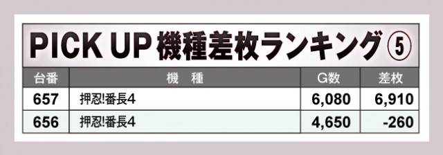 続いては、当日店内を大いに盛り上げた5機種をチェック。5機種全てから良台が出現していたが、とくに注目して欲しいのは、最優秀台も獲得した「パチスロ 革命機ヴァルヴレイヴ」で間違いないだろう。ピックアップした5台のうち3台が差枚+2,000枚超えと上々の結果をマーク! その他の機種も素晴らしく、もちろんこれら5機種以外からも良台はアチコチに出現していた!