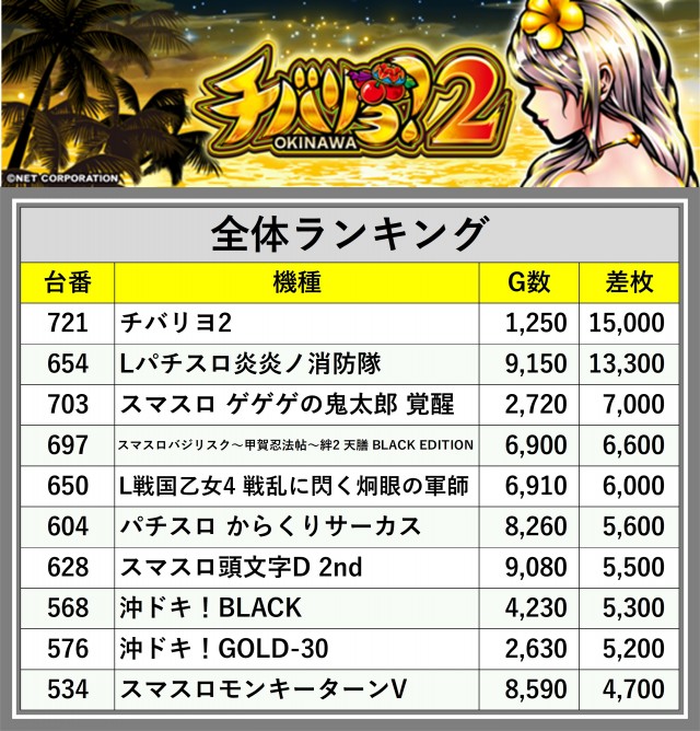 厳選された取材対象機種をはじめ、その他スロット全体から好記録が飛び出した!プレイヤーが楽しんだ1日を下記データにて振り返ってみて欲しい。