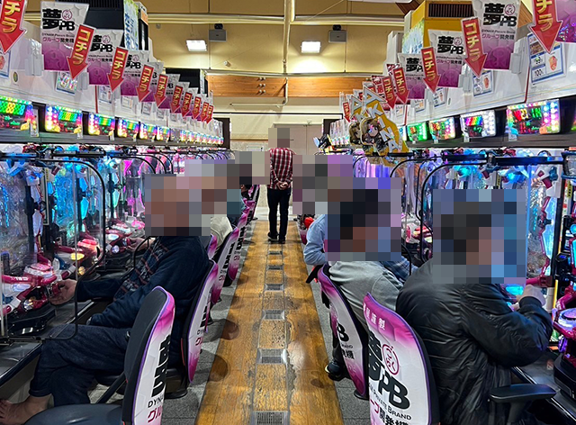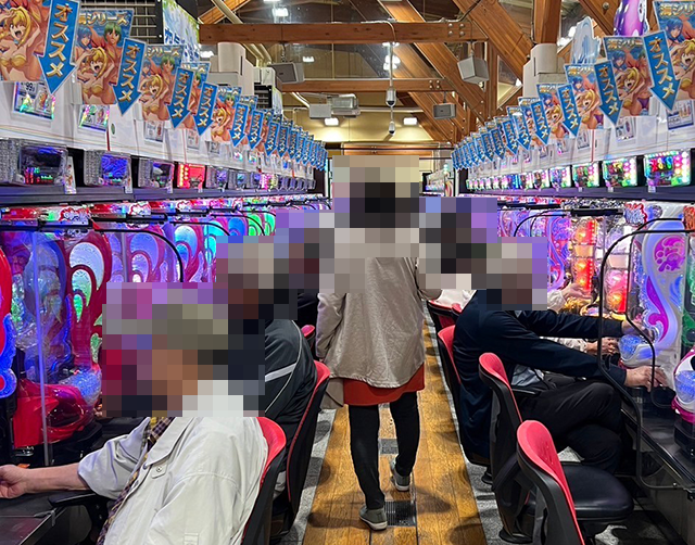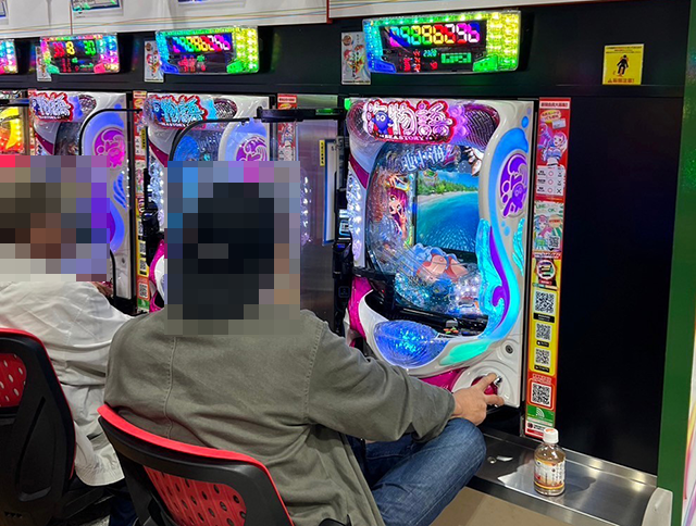 うれしそうに遊技をおこなっている姿が並んでおり、シマ内からはにぎわいが感じられた。