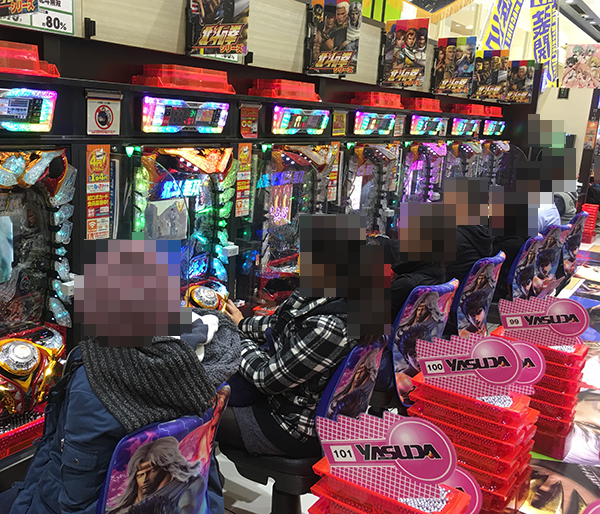 初日となる24日の15時頃にホール内をみると、20円パチスロの「ミリオンゴッド-神々の凱旋-」や「バジリスク~甲賀忍法帖~絆」に、機種の性能を最大限まで引き出しているといったプレイヤーがおり、満面の笑みを浮かべていた。
