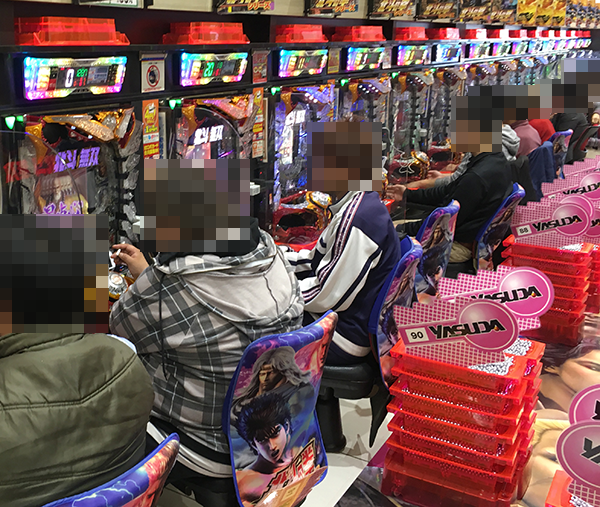 4円パチンコで目立っていたのが、「ぱちんこCR真・北斗無双」や「CR花の慶次X~雲のかなたに~」。シマ全体に華やかな光景が広がっており、充実した時間を過ごせているように思えた。
