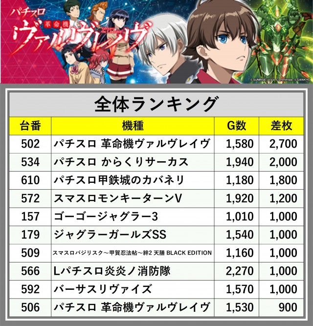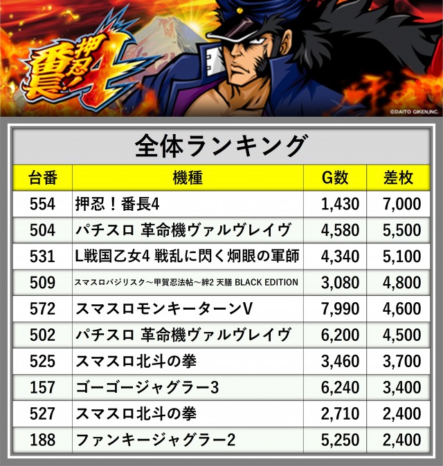 厳選された取材対象機種をはじめ、その他スロット全体から好記録が飛び出した!プレイヤーが楽しんだ1日を下記データにて振り返ってみて欲しい。