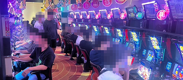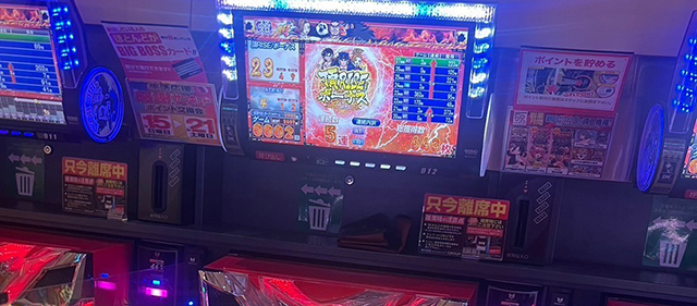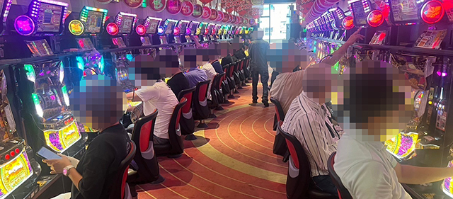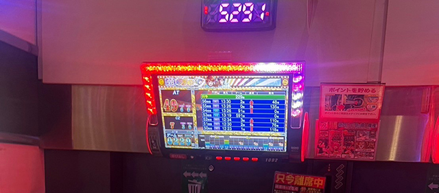 機種別に見てみると、『押忍!番長4』『スマスロ北斗の拳』『パチスロ からくりサーカス』といったコーナーで大台突破台を複数確認。このほかにも、右肩上がりのグラフを描く台が多数存在し、それぞれが膨大な熱気に包まれていた。さすがは人気ホールと思わせる展開に、取材班も驚きを隠せない様子だった。