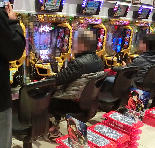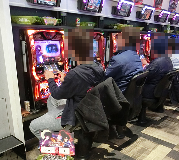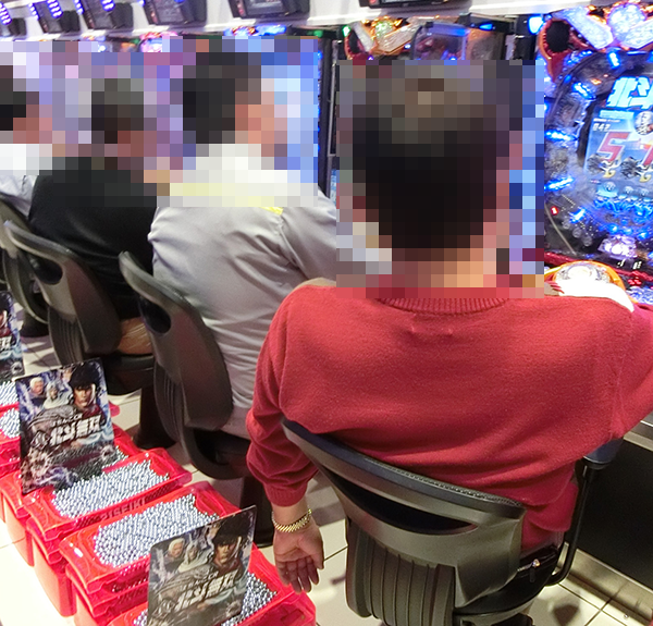 4円パチンコも前日の取材時とおなじく、「ぱちんこCR真・北斗無双」が大にぎわい。プレイヤーの輝くような笑顔も印象に残っている。