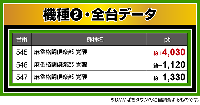 『麻雀格闘倶楽部 覚醒』は、545番台が約+4,000ptを上回った。