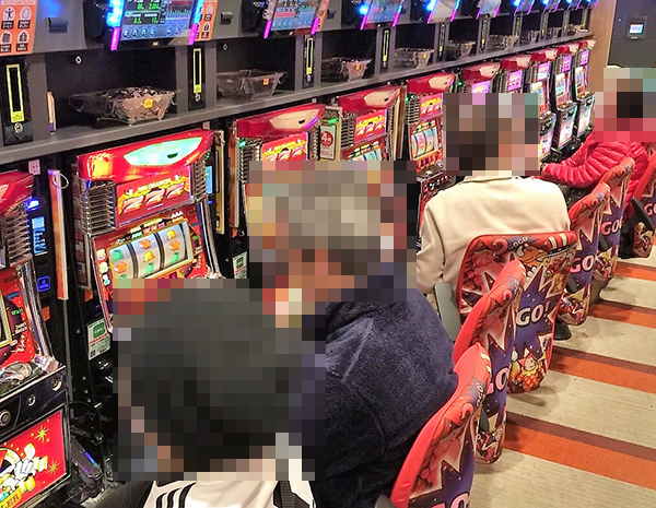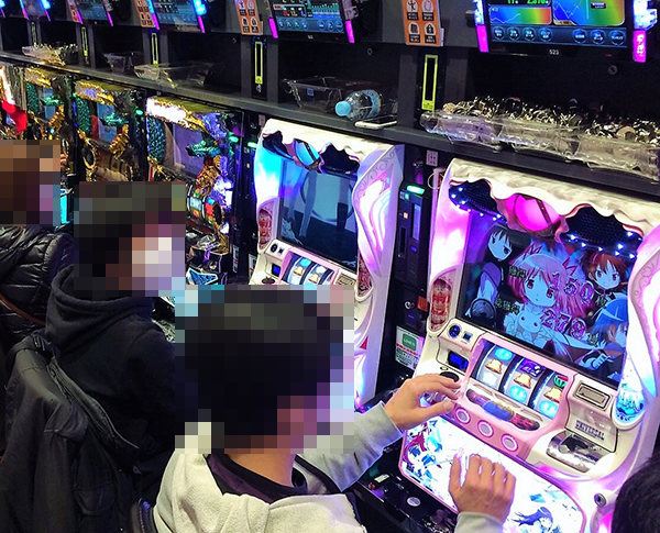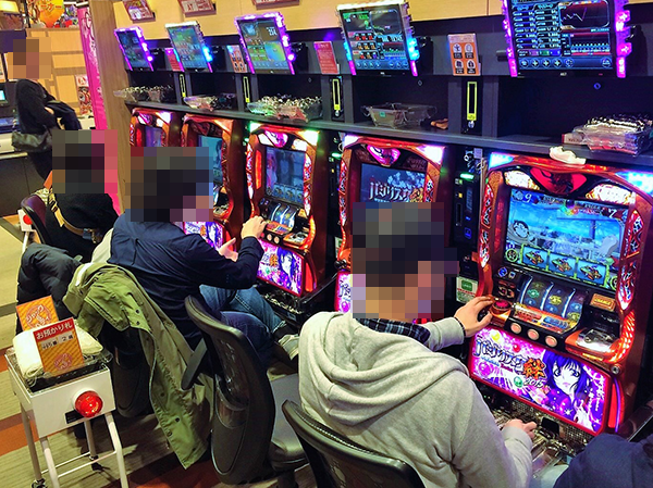 17時頃のパチスロでは前日の取材時と似た傾向がみられ、「バジリスク~甲賀忍法帖~絆」が大盛況。華やかな光景が広がっており、大満足といった表情のプレイヤーも確認した。