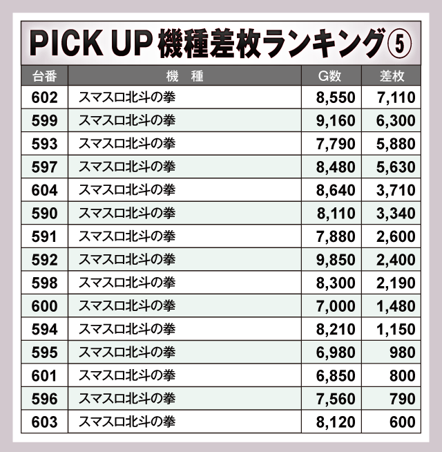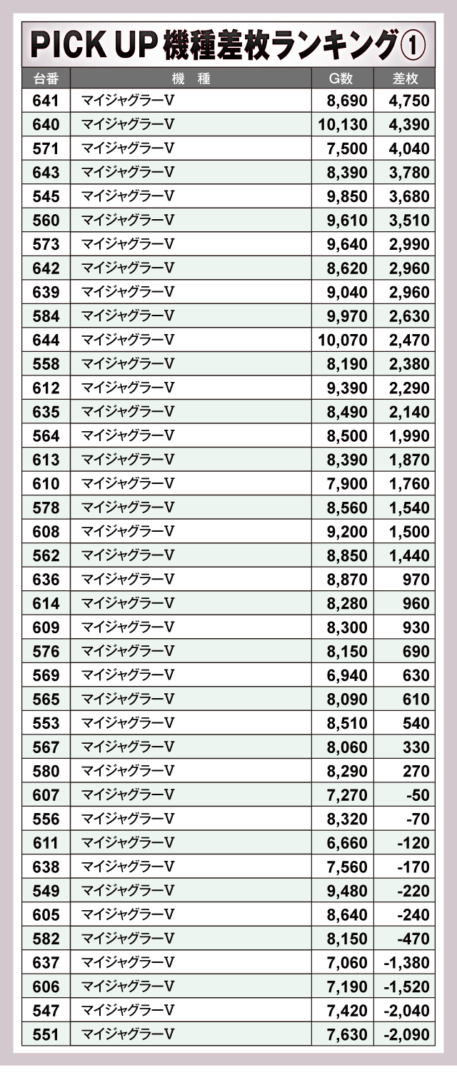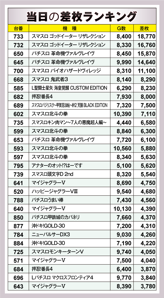 ※差枚数順に掲載しています。