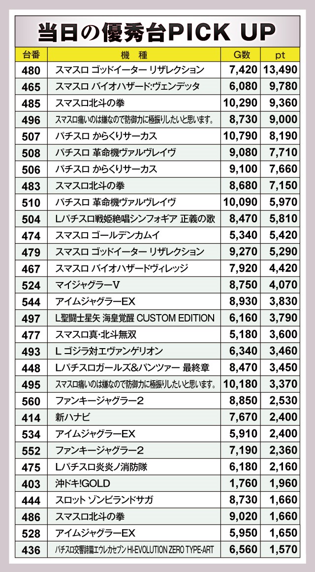※差枚pt順に掲載しています。