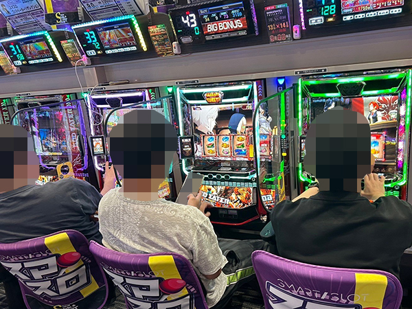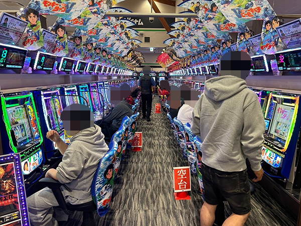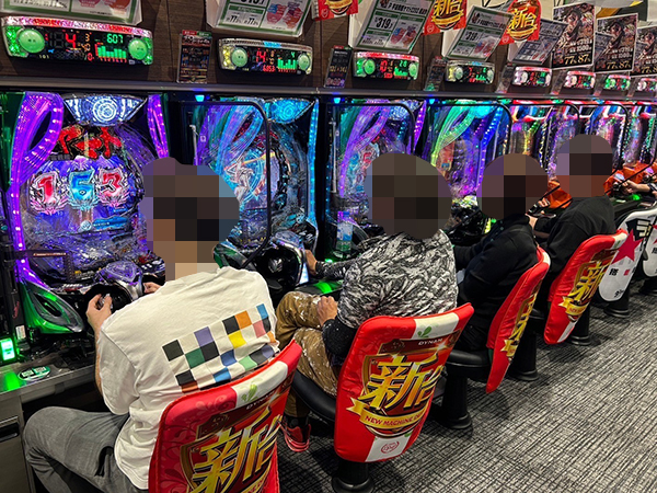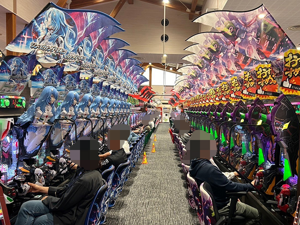 取材時は既に多くのプレイヤーが集結し、パチンコ・パチスロを問わずにぎやかな状況となっていた。