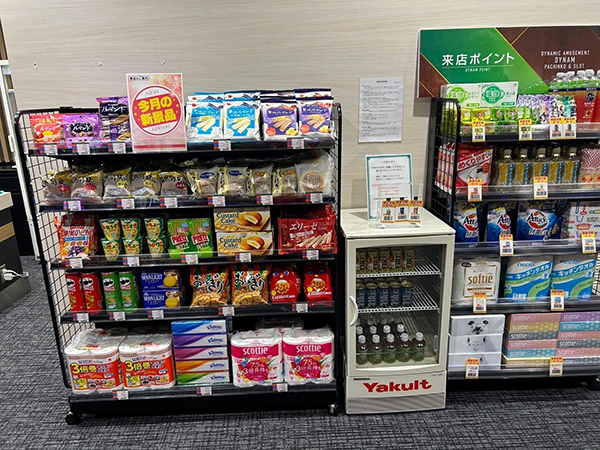 景品コーナーは豊富な品揃えで、日用品・お菓子・ドリンク類など様々なアイテムが用意されていた。