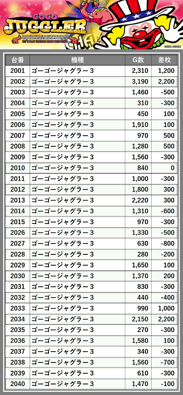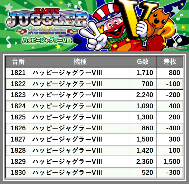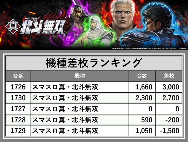 厳選された取材対象機種をはじめ、その他スロット全体から好記録が飛び出した!プレイヤーが楽しんだ1日を下記データにて振り返ってみて欲しい。