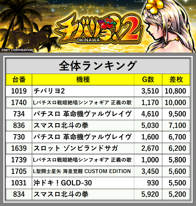 厳選された取材対象機種をはじめ、その他スロット全体から好記録が飛び出した!プレイヤーが楽しんだ1日を下記データにて振り返ってみて欲しい。