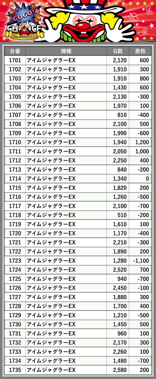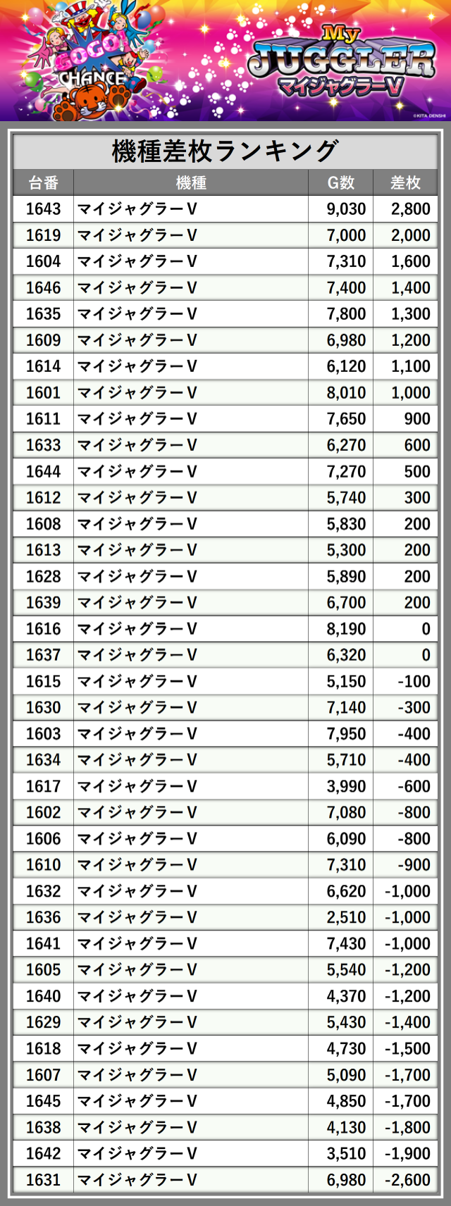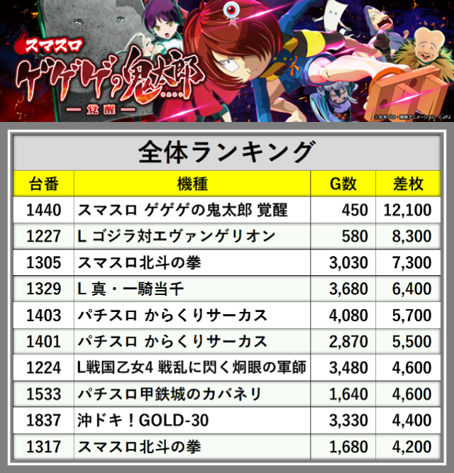 厳選された取材対象機種をはじめ、その他スロット全体から好記録が飛び出した!プレイヤーが楽しんだ1日を下記データにて振り返ってみて欲しい。
