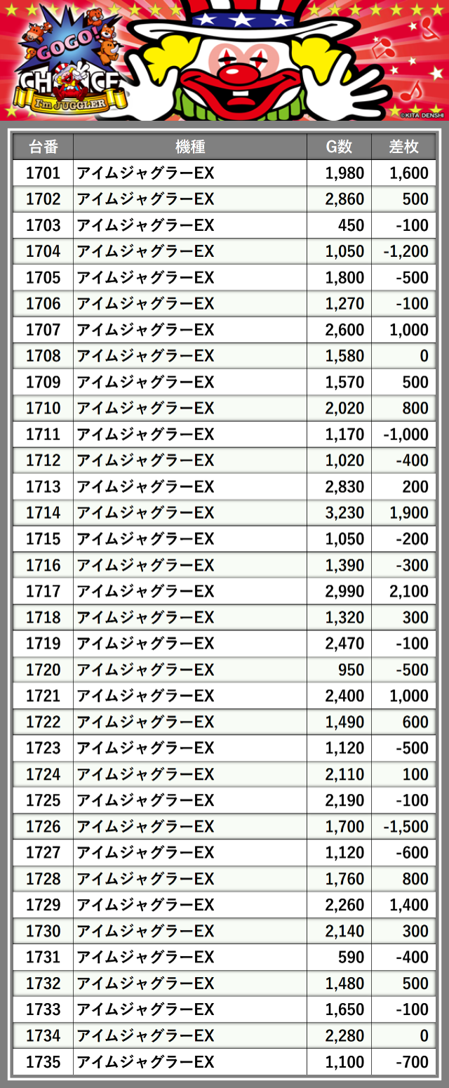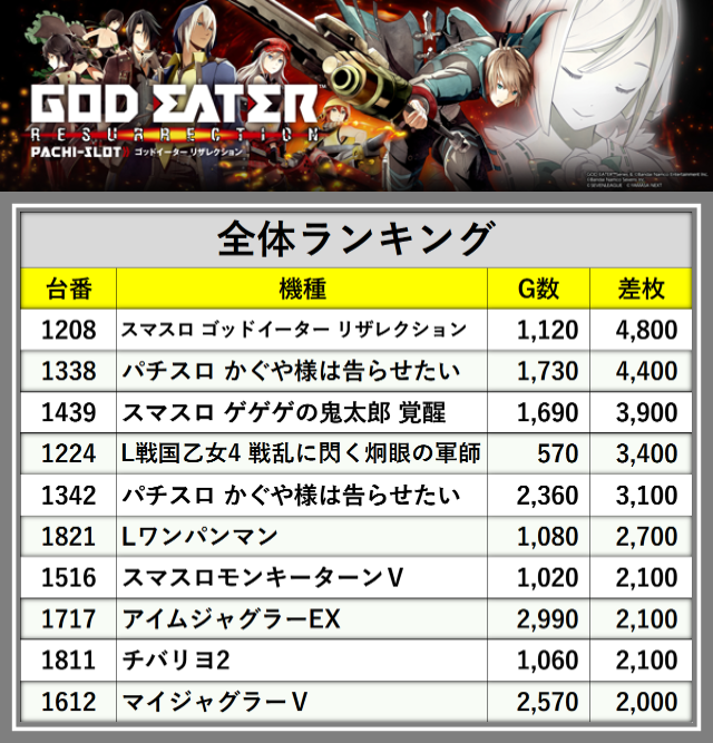 厳選された取材対象機種をはじめ、その他スロット全体から好記録が飛び出した!プレイヤーが楽しんだ1日を下記データにて振り返ってみて欲しい。