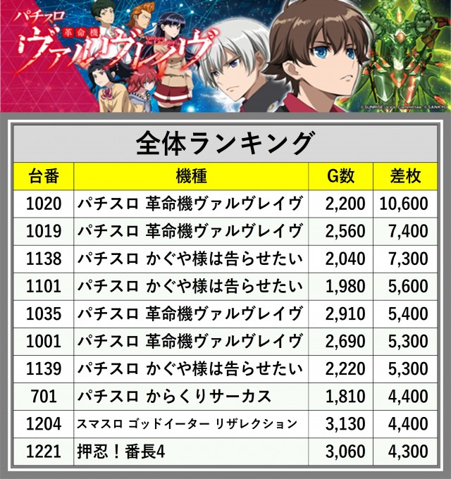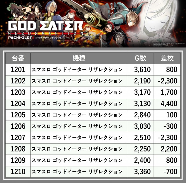 厳選された取材対象機種をはじめ、その他スロット全体から好記録が飛び出した!プレイヤーが楽しんだ1日を下記データにて振り返ってみて欲しい。