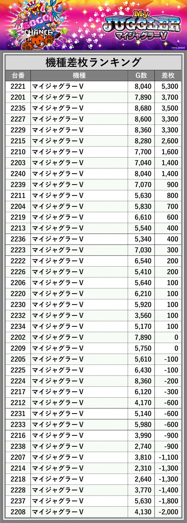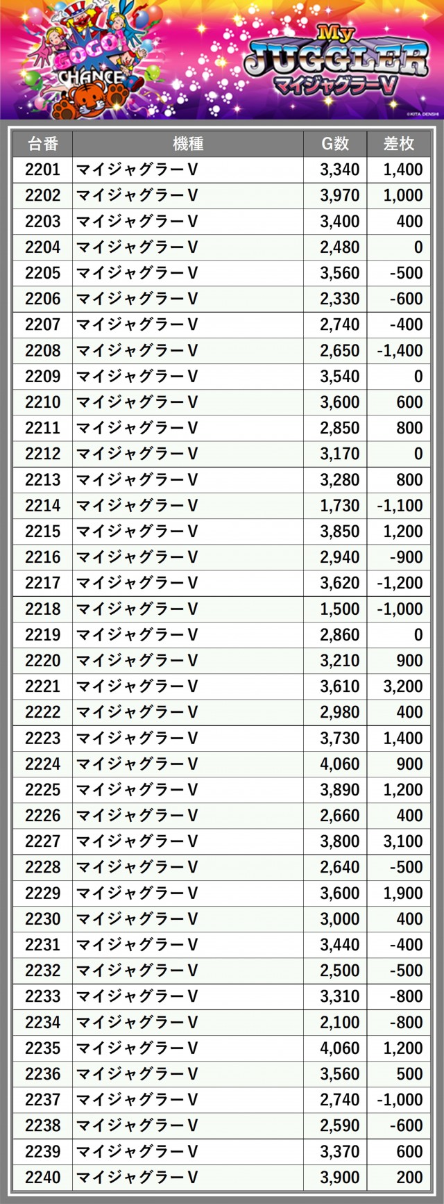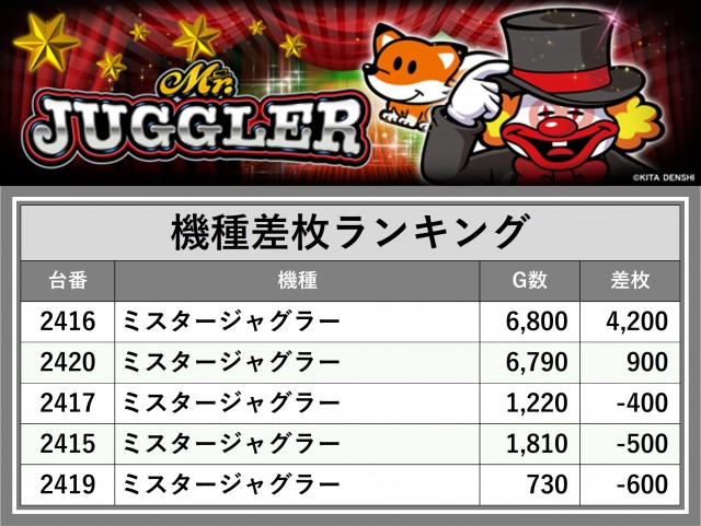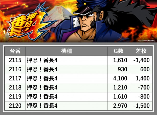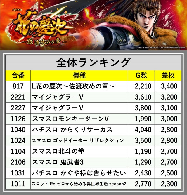 厳選された取材対象機種をはじめ、その他スロット全体から好記録が飛び出した!プレイヤーが楽しんだ1日を下記データにて振り返ってみて欲しい。