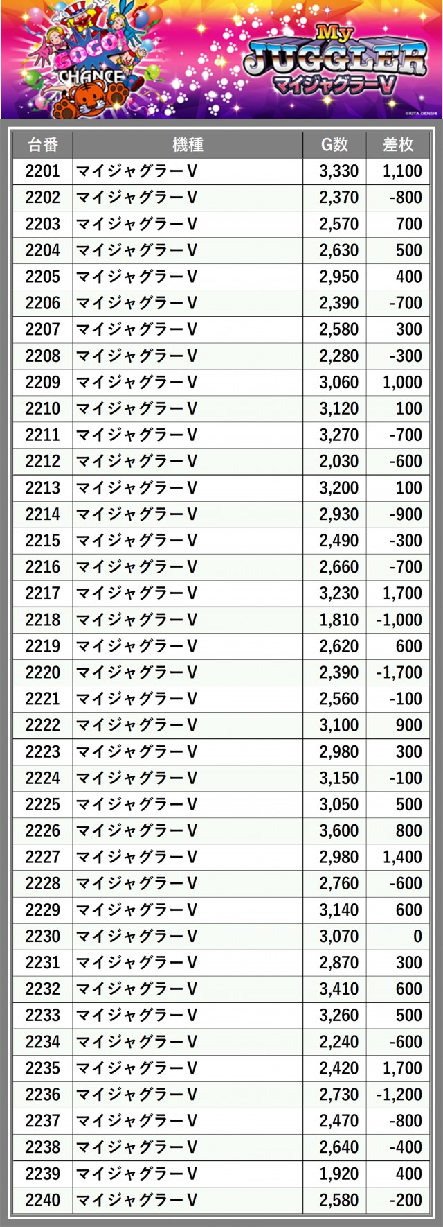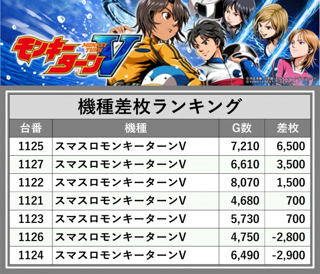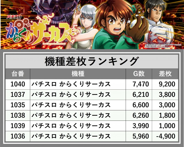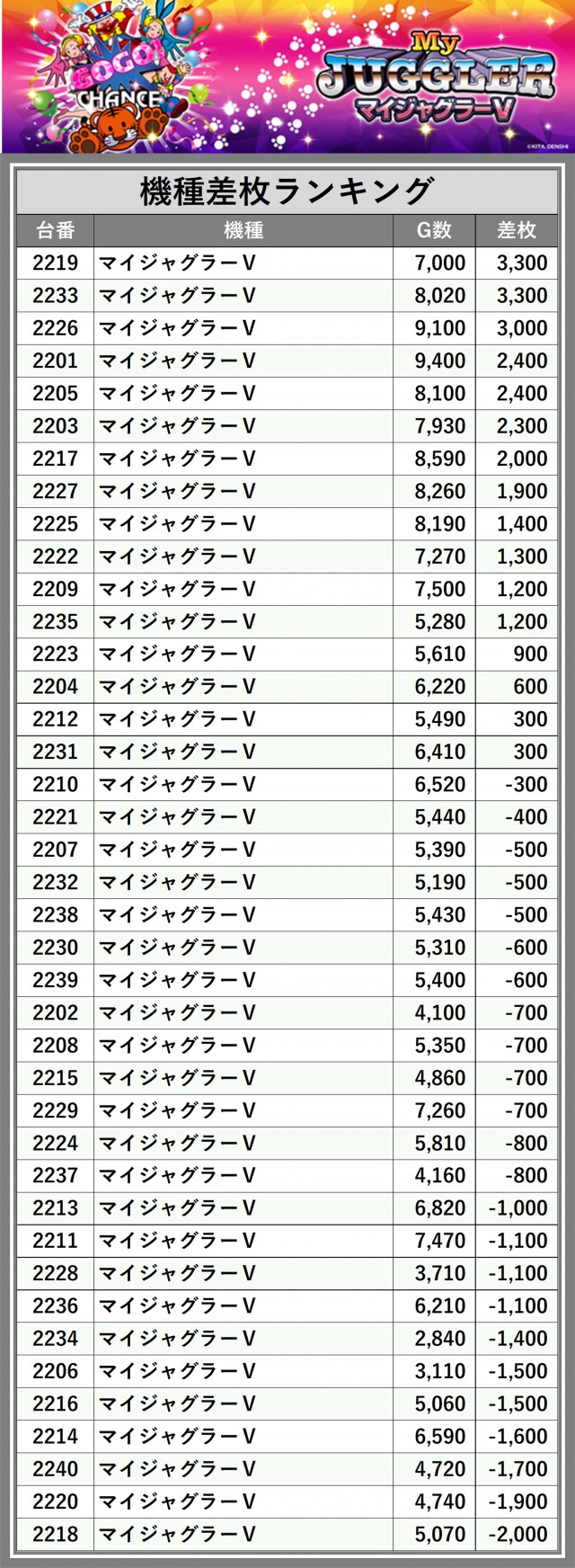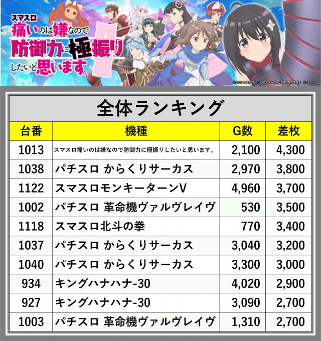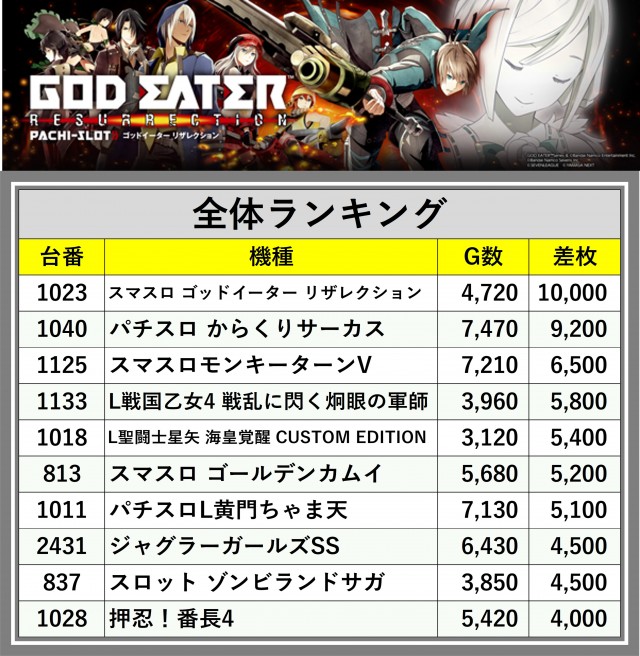 ※差枚数順に掲載しています