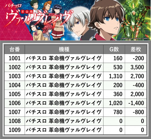 ※台番順に掲載しています