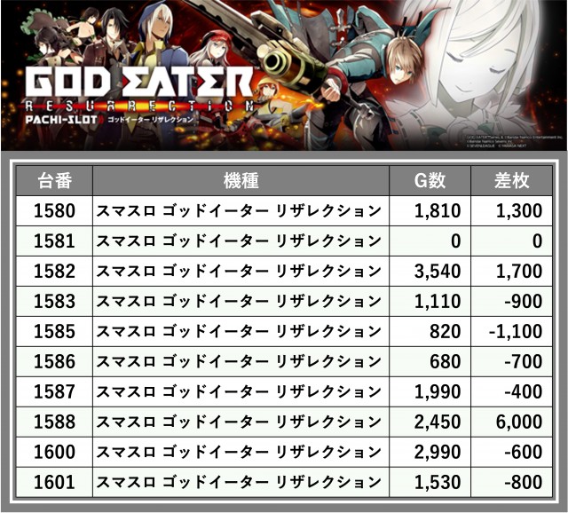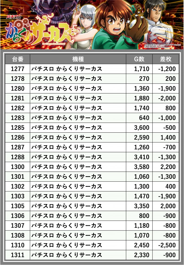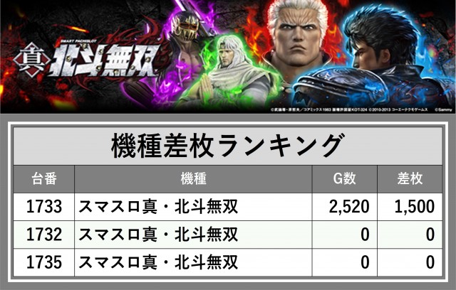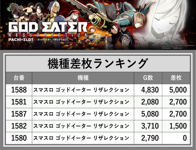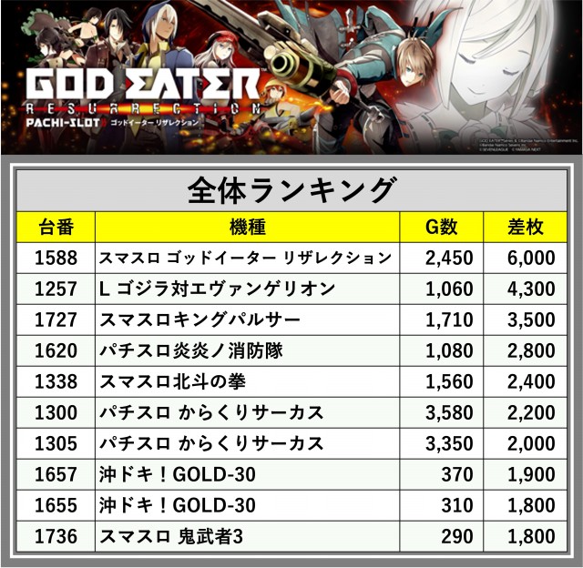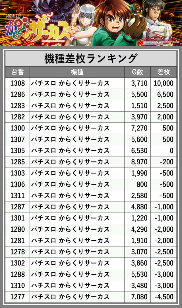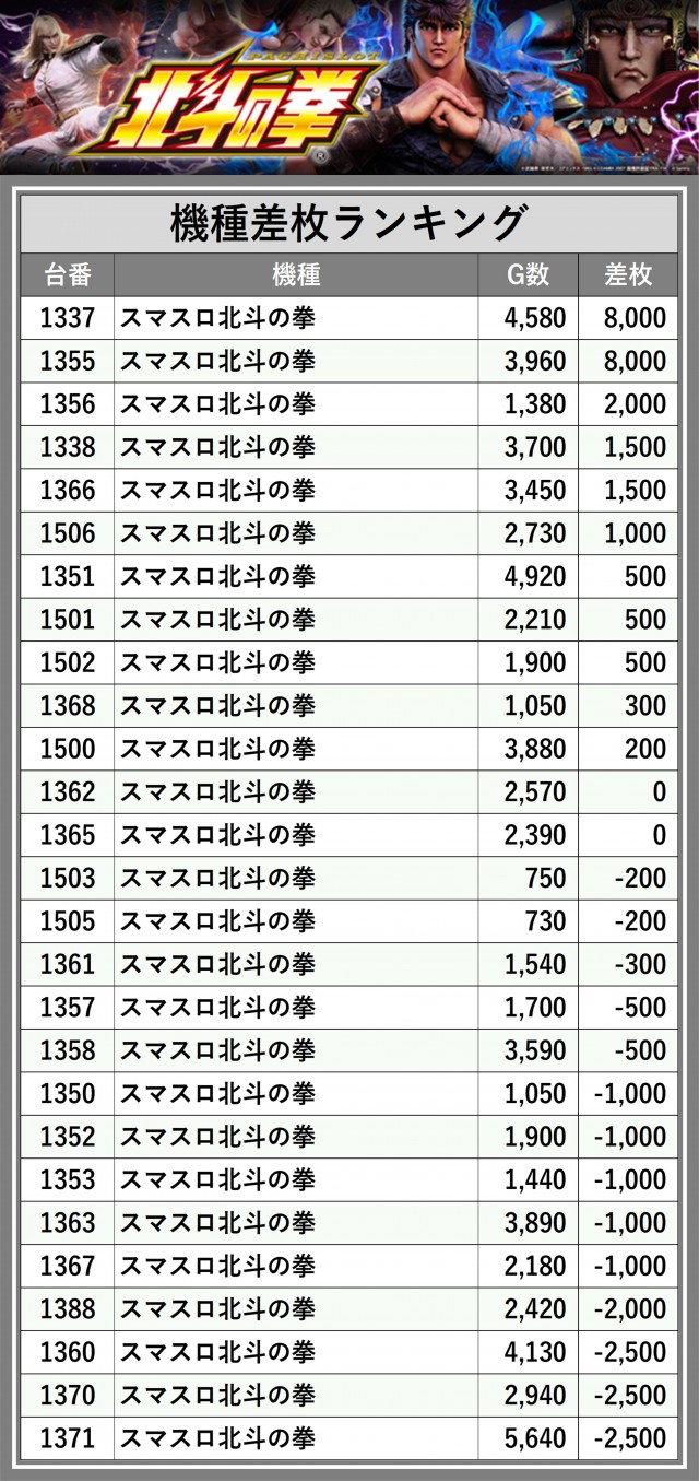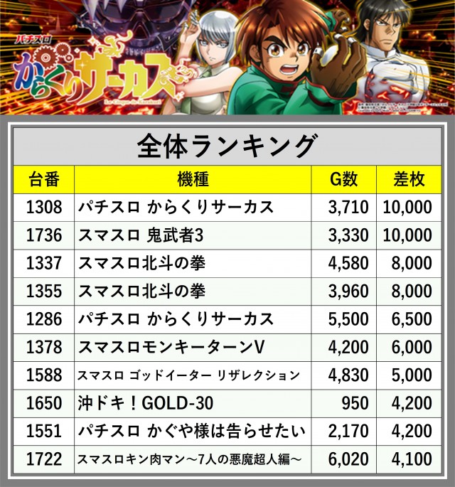 ※差枚数順に掲載しています