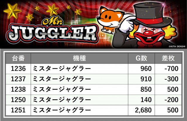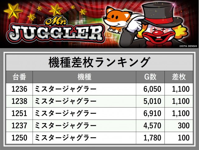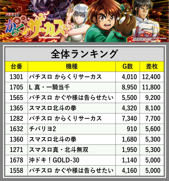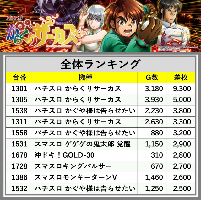 厳選された取材対象機種をはじめ、その他スロット全体から好記録が飛び出した!プレイヤーが楽しんだ1日を下記データにて振り返ってみて欲しい。