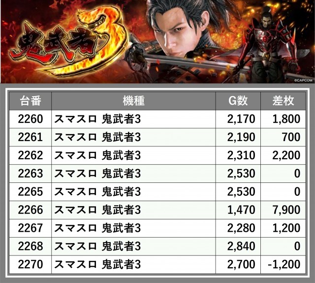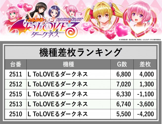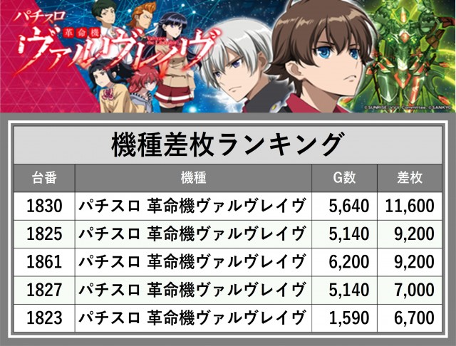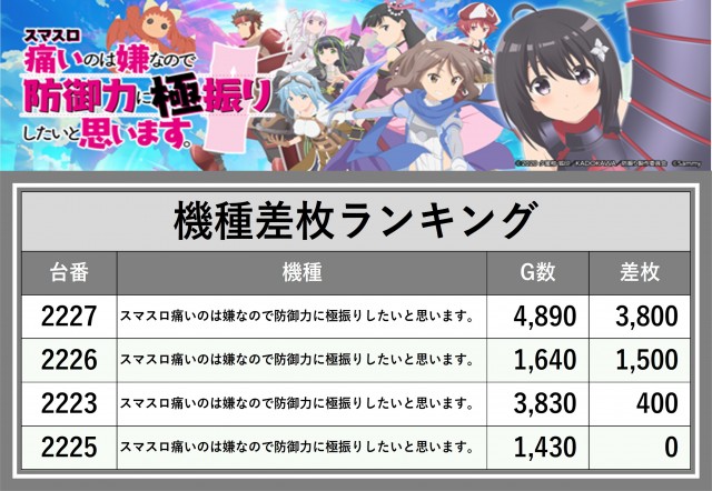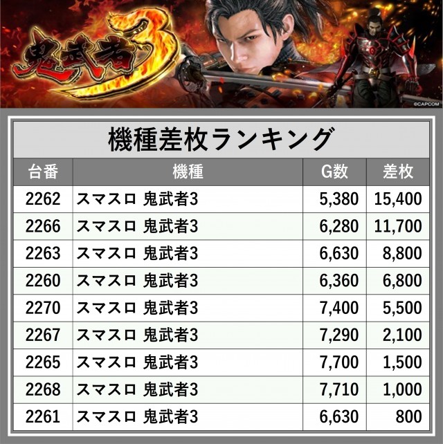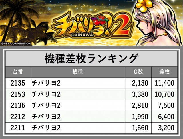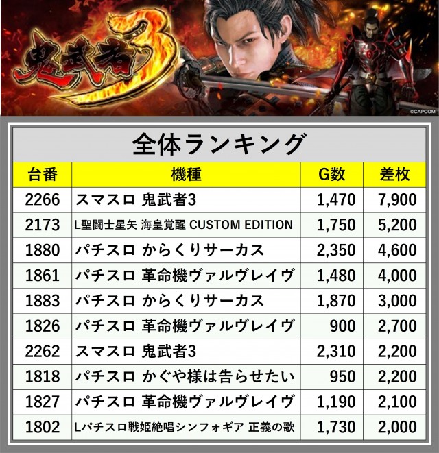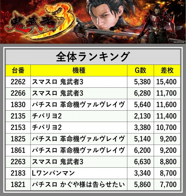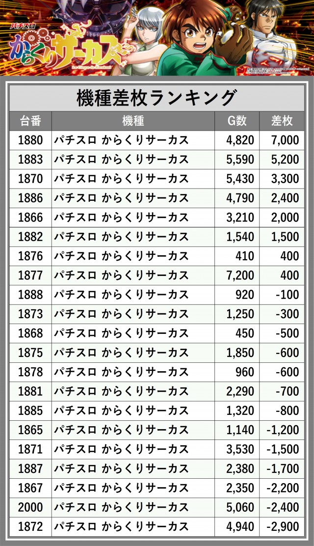 ※差枚数順に掲載しています