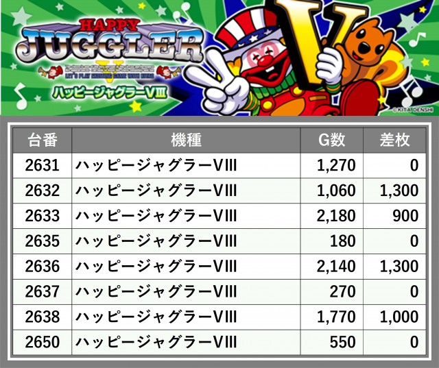 厳選された取材対象機種をはじめ、その他スロット全体から好記録が飛び出した!プレイヤーが楽しんだ1日を下記データにて振り返ってみて欲しい。
