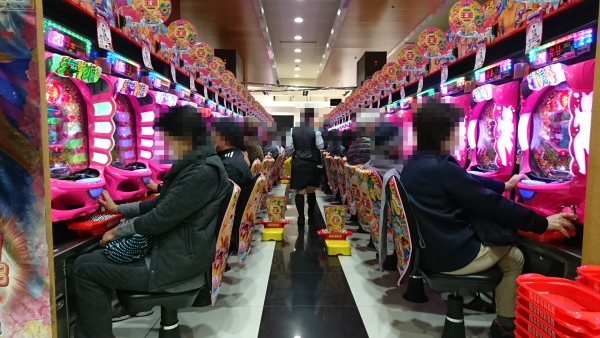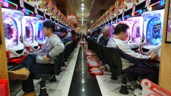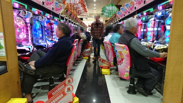 ホールをのぞいてみると、「ちょいパチ」コーナーがプレイヤーの注目が高く大盛況。