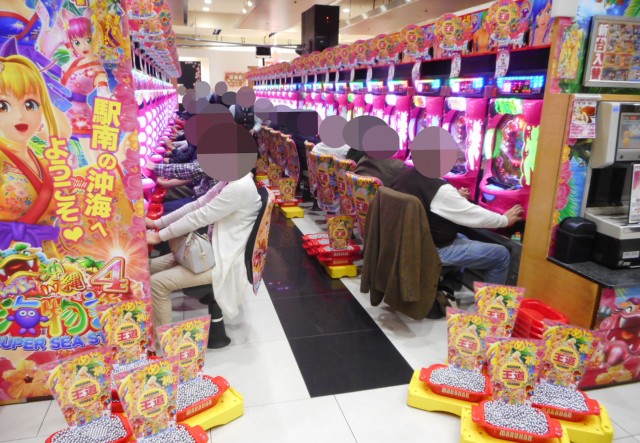 15時過ぎの4円パチンコでは、「CRスーパー海物語IN沖縄4」などが人気。