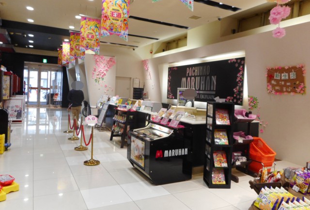 また、カウンターや賞品コーナーには桜の装飾が多数。ホール内にいても、春を感じられる空間となっていた。