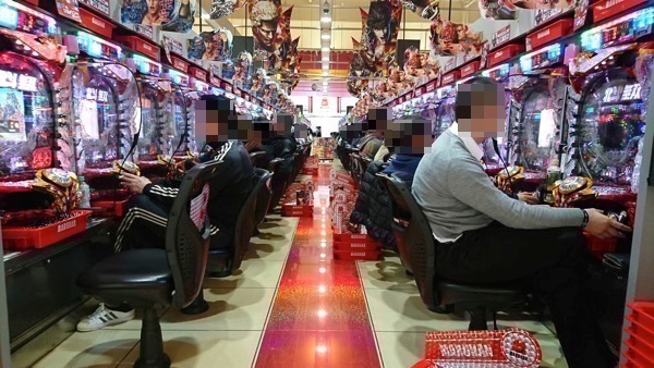16時を過ぎた頃の4円パチンコでは、「CR花の慶次X~雲のかなたに~」や「ぱちんこCR真・北斗無双」が大きくにぎわっていた。「CRルパン三世~Lupin The End~」の人気も非常に高く、遊技を堪能しているプレイヤーが多かった。