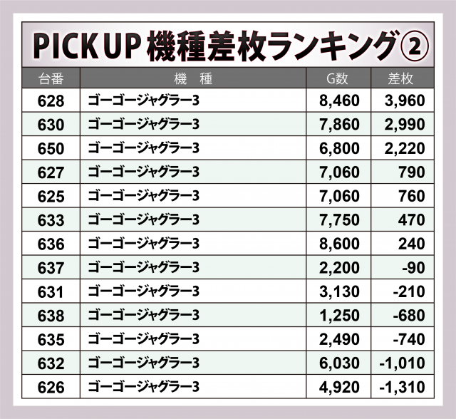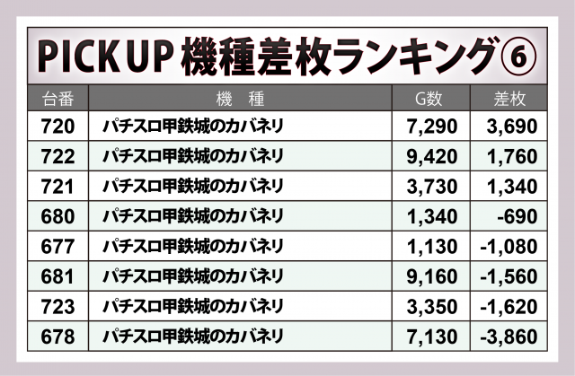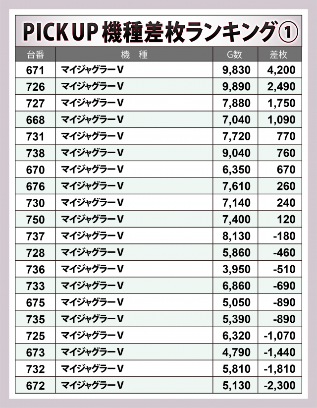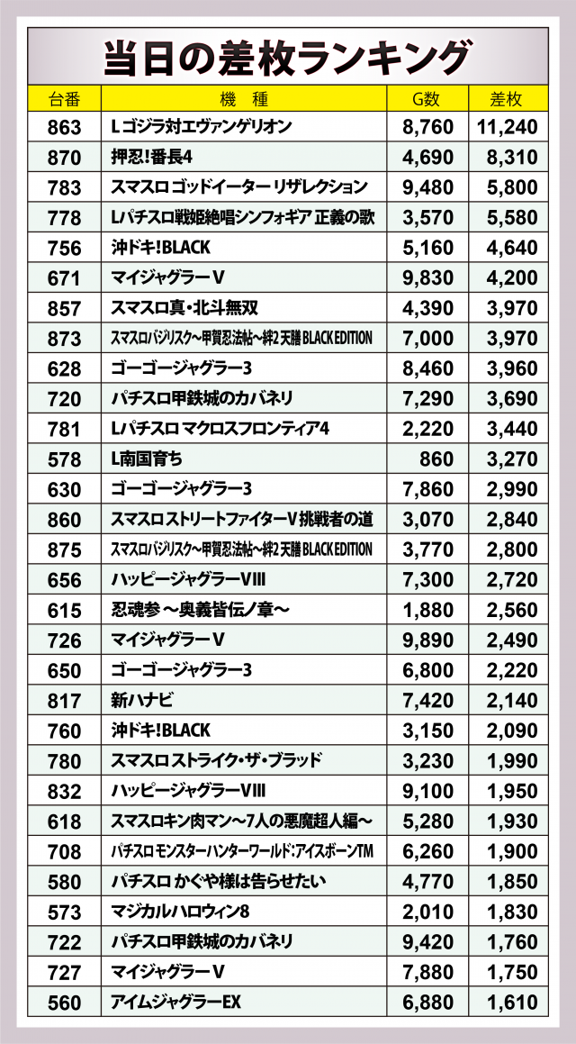 ※差枚数順に掲載しています。