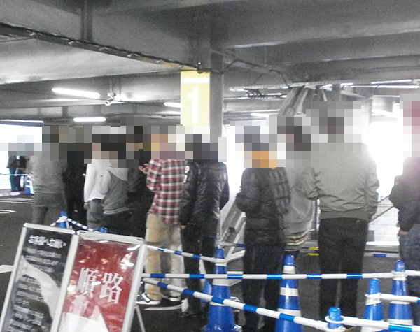 初日となる1日は、朝イチから約170人のプレイヤーが集合。整列の案内が書かれている看板も設置されているため、スムーズに入店していった。