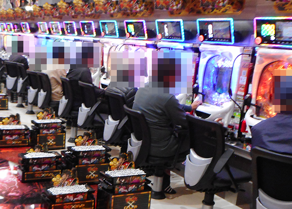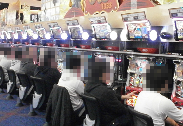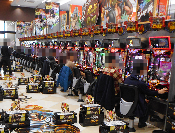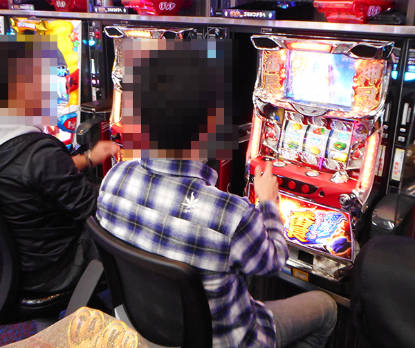 開店直後のパチスロでは、満席となっていた「押忍!サラリーマン番長」や「バジリスク~甲賀忍法帖~絆」を筆頭に、多くの機種が高稼働。