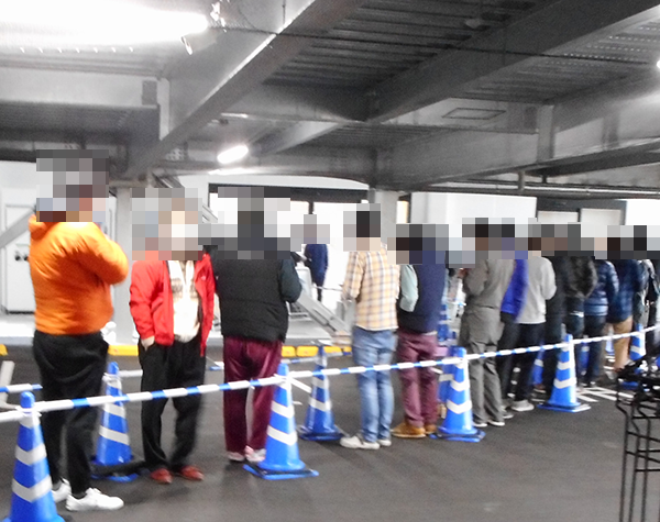 REAL取材Ωの2日目となる3月2日は、開店前から100人以上のプレイヤーが来店。大きな声であいさつをしているスタッフの姿も印象に残っている。