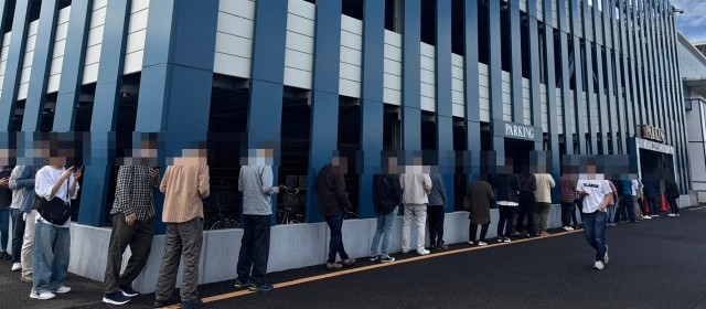 同店の当取材では万枚突破が数多く輩出され、しかも1日に複数であることも多いため、地元ファンでは大きな話題となっているのは想像に難くない。当日は土曜日ともあって開店待ちの並びには約250人が集った。冒頭で挙げた写真の通り、大半のプレイヤーが抱いた期待は裏切られることなく見事叶ったようだ。