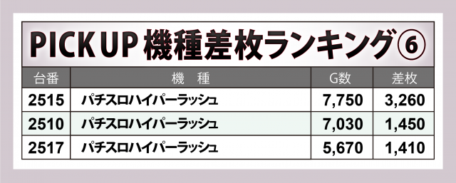 万枚を上回ったのが2台、優秀30台や特選9機種もハイレベルの出玉を果たし、終わってみれば歴代回に引けを取らない内容を保持することに成功した。