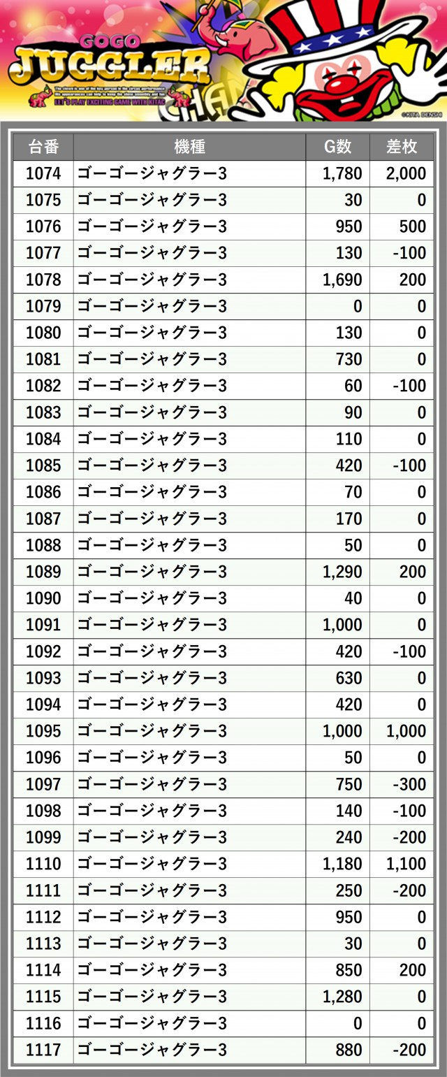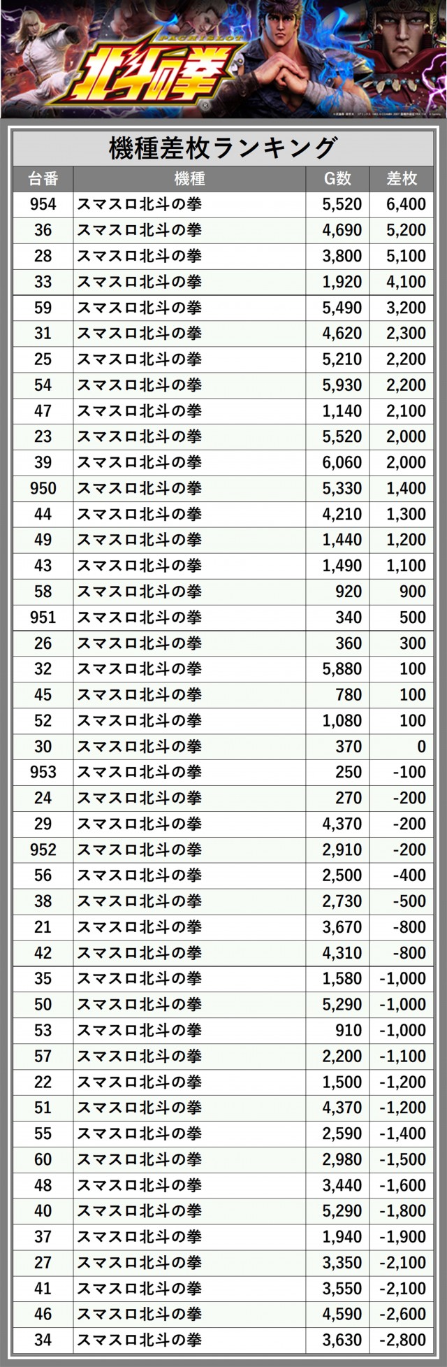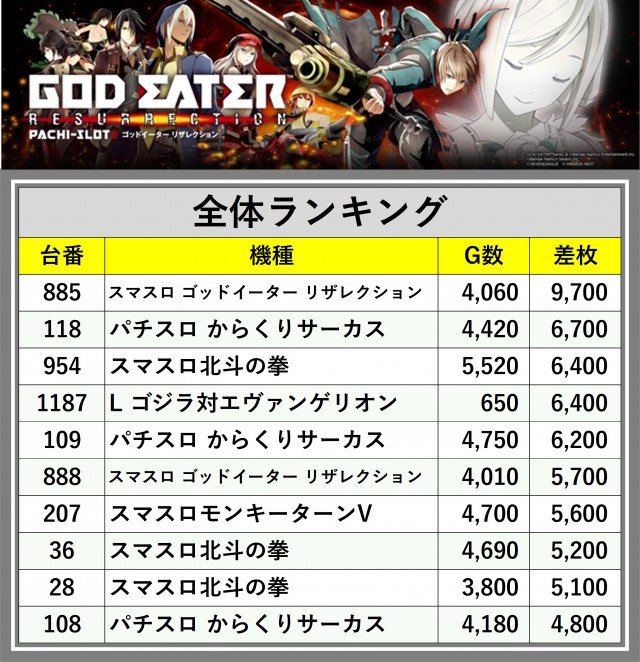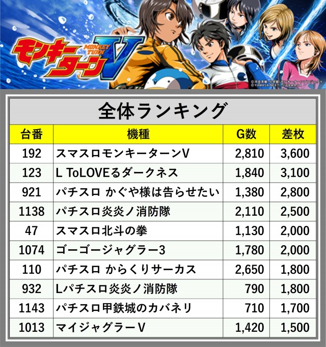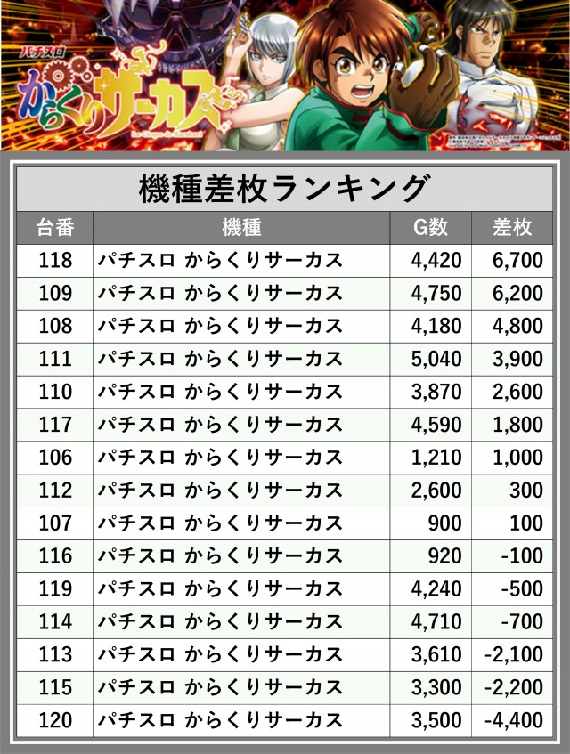 ※差枚数順に掲載しています