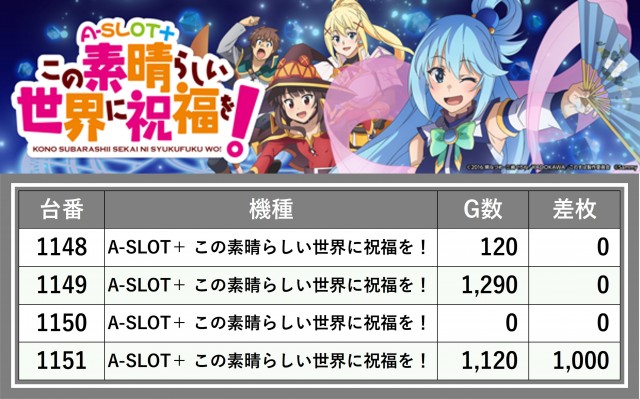 厳選された取材対象機種をはじめ、その他スロット全体から好記録が飛び出した!プレイヤーが楽しんだ1日を下記データにて振り返ってみて欲しい。