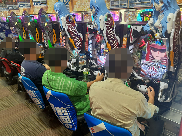 15時半ごろの4円パチンコをチェックすると、「ぱちんこ シン・エヴァンゲリオン Type レイ」や「新世紀エヴァンゲリオン〜未来への咆哮〜」で好調なプレイヤーを確認。時折見せる嬉しそうな表情が印象に残っている。