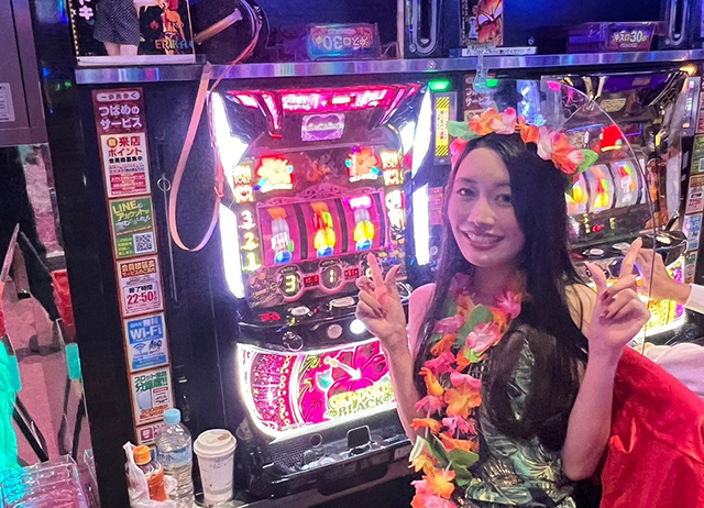 そんななかで、エリカちゃんは「沖ドキ!BLACK」に着席!!