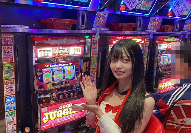まつりちゃんはというと、「ゴーゴージャグラー3」で実戦開始∠(>▽<)/