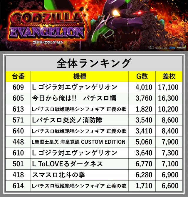 厳選された取材対象機種をはじめ、その他スロット全体から好記録が飛び出した!プレイヤーが楽しんだ1日を下記データにて振り返ってみて欲しい。