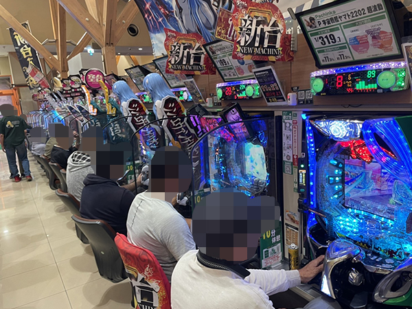 15時ごろの2円パチンコをチェックすると「新世紀エヴァンゲリオン〜未来への咆哮〜」や「P宇宙戦艦ヤマト2202 超波動」、「P CYBORG009 RULE OF SACRIFICE VS SCARL BODY EDITION 199」が好評の様子。プレイヤーの満足そうな表情から、充実した時間を過ごしていたことがうかがえる。