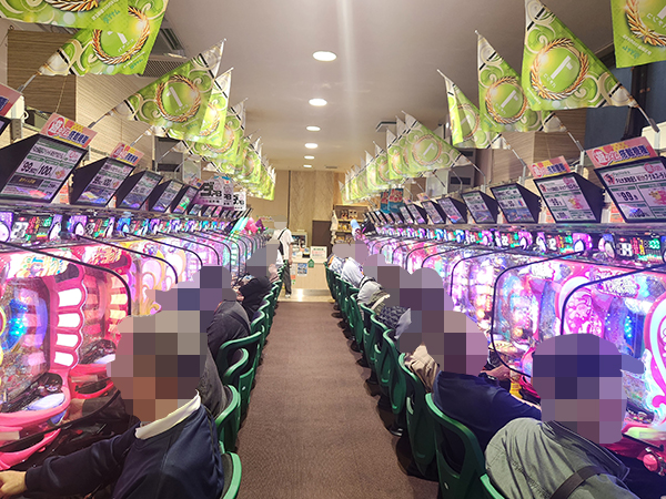 取材時には多くのプレイヤーが来店。貸し玉料金を問わず、随所で熱気が感じられた。
