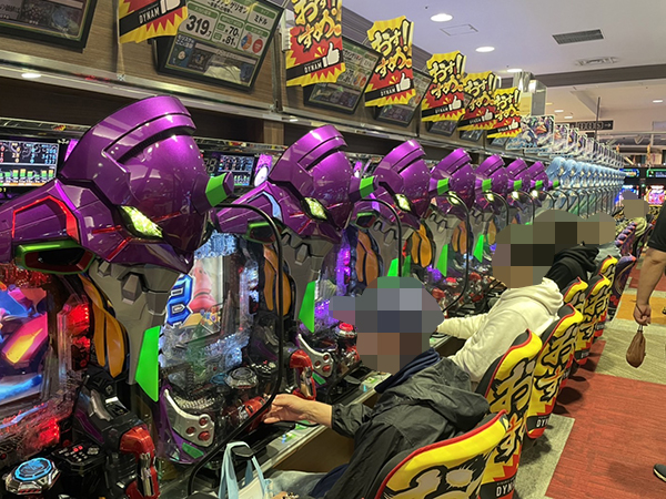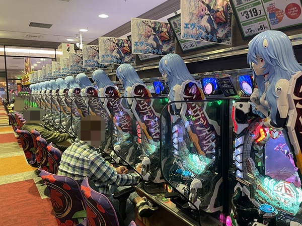15時ごろの4円パチンコでは「新世紀エヴァンゲリオン〜未来への咆哮〜」や「ぱちんこ シン・エヴァンゲリオン Type レイ」で好調なプレイヤーが見受けられ、時折見せる嬉しそうな表情が印象に残っている。